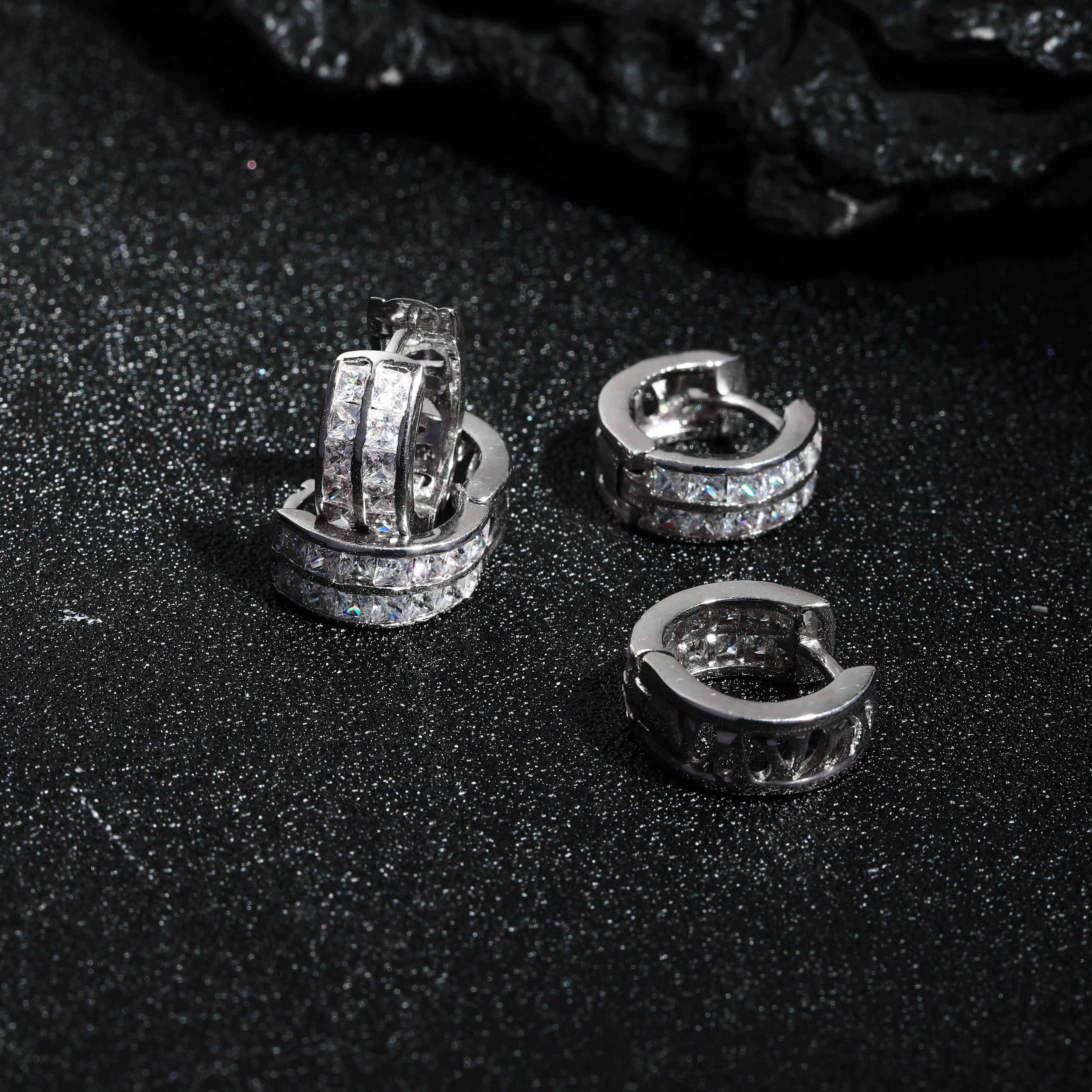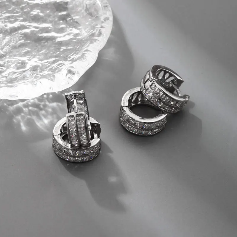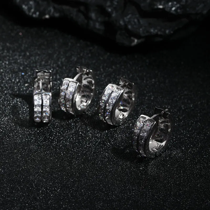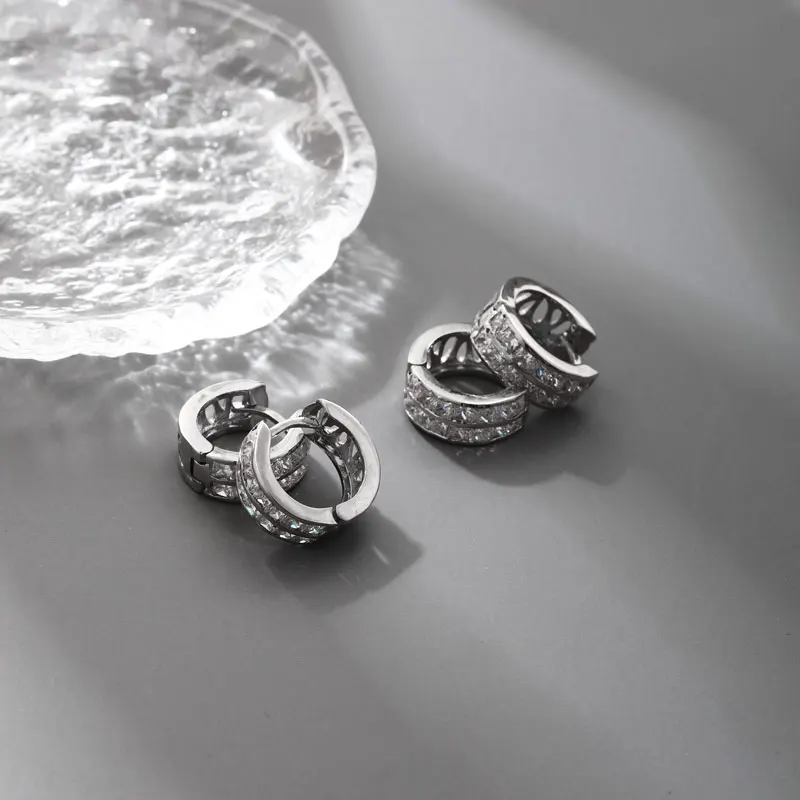 Keiyue Fashion Jewelry Classic Hoop Earrings 925 Sterling Silver Custom Double Zirconia Round Design Anniversary